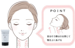 その後で、広頚筋のストレッチをする事で二重顎やフェイスラインのタルミなども解消されシャープな輪郭と首のシワ改善の両方が期待できます。