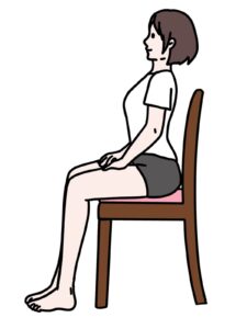 ・椅子に深く座り背もたれに背中を付ける。足は肩幅。