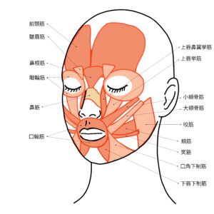 実は顔の表情は表情筋が作用しています。表情筋はかなり複雑で大きさや長さ方向等々が違う約30種類の小さな筋肉が頭部や頸部の一部とつながり存在します。表情筋は表情だけでなく、話す時や目の開閉又は噛む・飲む・吸うなど食事する時にも大きく関わっているのです。例えば「笑顔」を作る際、表情筋は、「大頬骨筋・小頬骨筋・口角拳筋」と幾つもの表情筋を使って「笑顔」を作るのです。この3つの表情筋が口角を引き上げ頬の表情を作り素敵な笑顔になるのです。未意識にやっている事ですが表情がこんなにも豊かなのは人間だけです。動物たちは嬉しさや喜びを身体全身で表現しますが、人間だけは顔の表情だけで喜怒哀楽を表現できてしまうのです。これこそが表情筋のなせる業なのです。