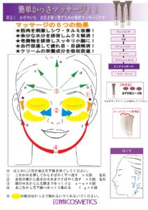 そこで、上記用紙を参考に表情筋のトレーニングを行いましょう。簡単に1回で効果を感じて頂けるはずです。顔がポカポカしてきて肌も柔らかくなり、顔のお肉が軽くなったように感じるはずです。小顔効果もあるので老若男女問わずお勧めのマッサージです。
