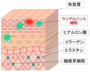 そして「ランゲルハンス細胞」のもう一つの大きな役割は、皮膚の新陳代謝が正常に行われているか?分泌作用により皮膚は弱酸性に保たれているか?等をチェックし異常を感知すると脳に情報を連絡しているとも言われています。約150年前にドイツのパウル・ランゲルハンス博士によって発見された「ランゲルハンス細胞」ですが、いまだに解明されていない事も多いようです。