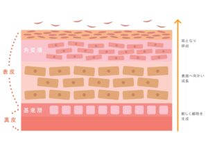 肌が生まれ変わっている事は、皆さんご存じですよね?簡単に説明すると皮膚の一番外側の表皮層で細胞が生まれ変わる事で、基底層で生まれた細胞が上へ上へと押し上げられ、垢となって剥がれ落ちるまでを一定の周期で行い新しい表皮に入れ替わる事です。この肌の新陳代謝を「ターンオーバー」と呼んでいます。このターンオーバーによって「シミ」は垢と一緒に体外に排泄されるのです。「シミ」が現れたとしてもターンオーバーによって排泄されれば、肌にはシミが居座る事もなく悩むこともありません。
